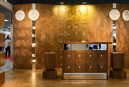 На стенде FINEX в «Манеже» была представлена новая коллекция Wellness Wood, модульный паркет с инкрустацией а так же инновационная коллекция деревянной плитки.